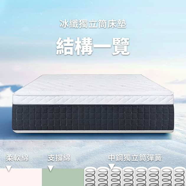 - 床墊分層:柔軟綿、支撐綿、合金鋼線獨立筒彈簧