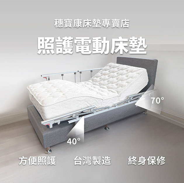 告別照護重擔,給您與摯愛更輕鬆的日常!長期照護讓您筋疲力盡嗎?穗寶康照護電動床墊,專為減輕照護壓力而生。一鍵輕鬆調整床墊角度,讓您與被照護者都能擁有舒適、自在的生活。