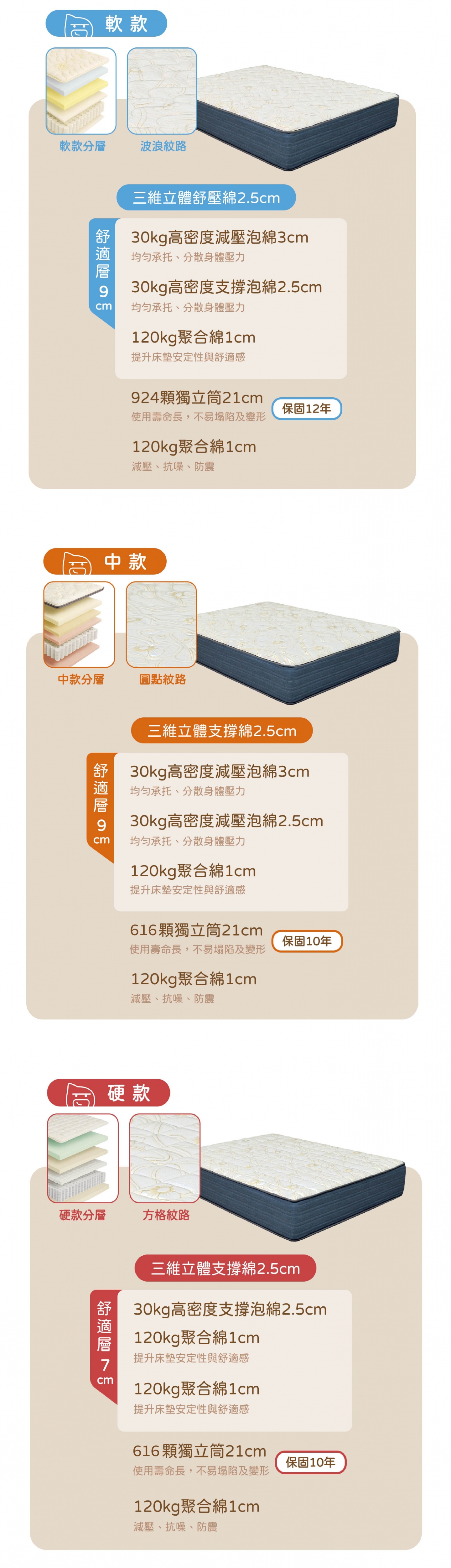 多層內材結構滿足不同需求,舒適與支撐分層保固清楚,