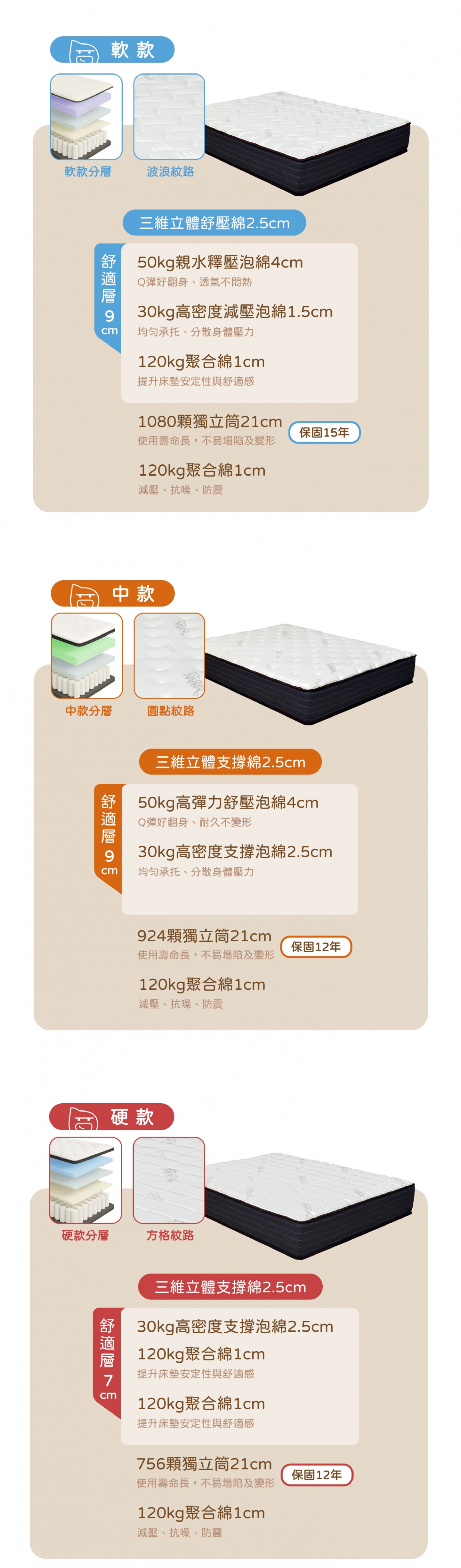 多層內材結構滿足不同需求,舒適與支撐分層保固清楚,