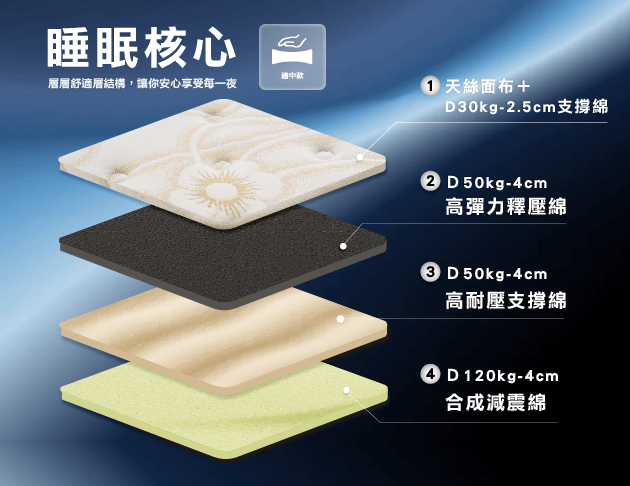 天絲表布透氣又親膚,搭配乳膠彈力支撐,久睡也不塌陷