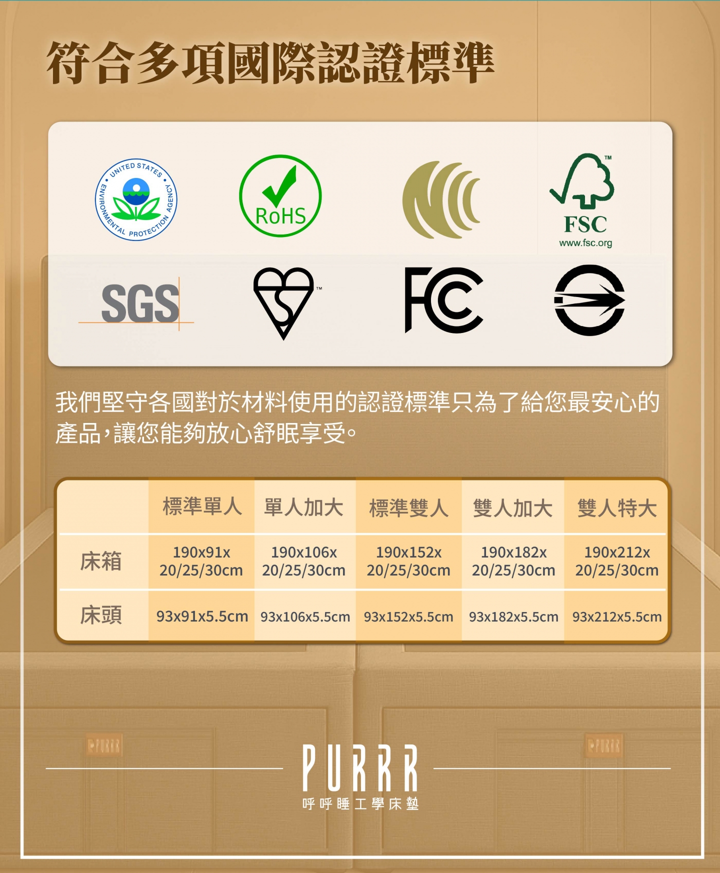 從選材到製作,嚴格把關每一道程序,只為提供您與家人一個安心、安全、健康的睡眠環境