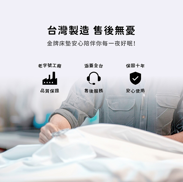 為了讓消費者更加安心,我們提供安心原廠保固,並投保高額產品責任險,結合SGS檢驗的品質保障,讓您每晚都能在安心與舒適中進入深度睡眠。