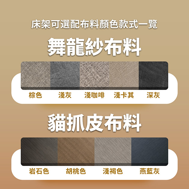 穗寶康深知每個人對家的想像都不同。因此,我們提供多種客製選擇,包括皮革、舞龍紗紋布料、貓抓皮等多種材質,讓您可以根據自己的喜好和臥室風格,打造獨一無二的床架。