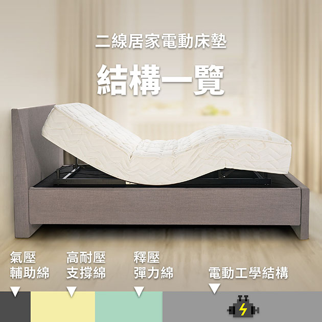 - 床墊選配:可選配二線電動床墊、三線電動床墊。