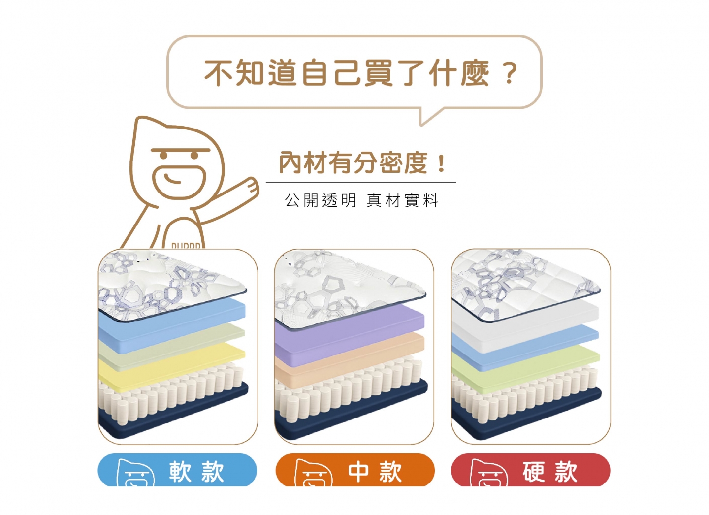 買床別再當盲盒玩家!呼呼睡公開材質和獨立筒顆數,還有床墊價格優勢(買貴退差價),睡得舒適又買得放心。