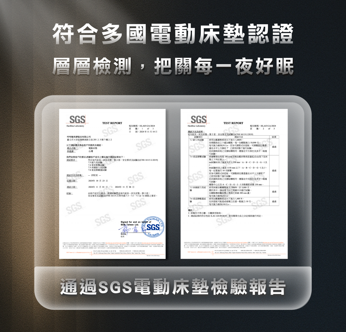 呼呼睡每一張電動床墊 經過國際檢驗與層層測試