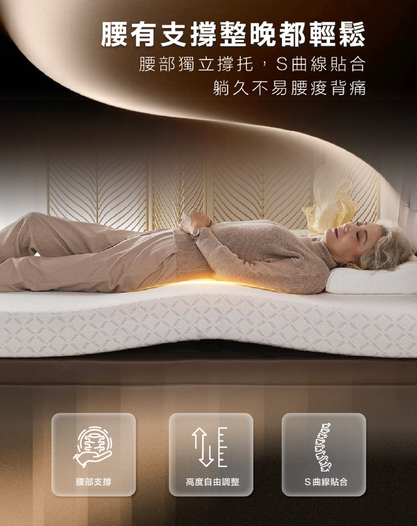 腰腹受力均勻分散,躺久也不易腰痠背痛。 -