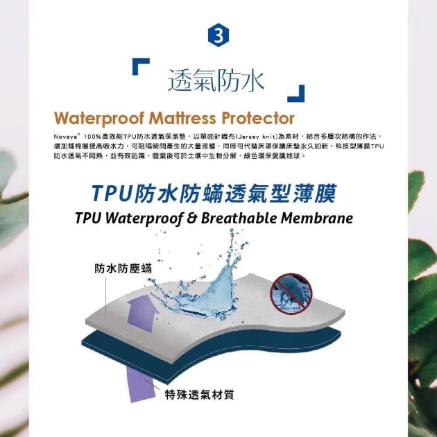 - 材質:100% 針織聚酯纖維 + TPU防水透氣薄膜